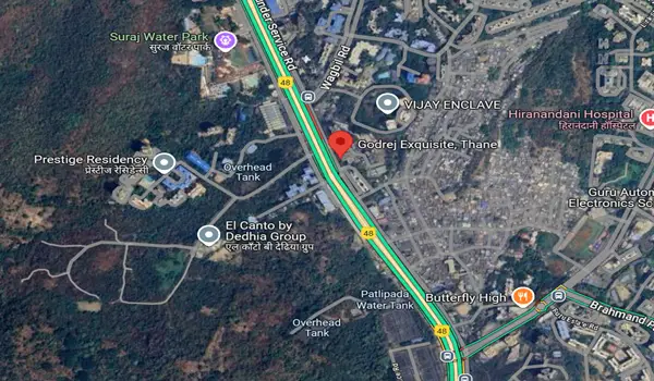 Godrej Exquisite enjoys a prime location on Ghodbunder Road, opposite Suraj Water Park in Thane West, one of Mumbai’s most vibrant growth corridors. The location of Godrej Exquisite enjoys superb connectivity, offering effortless access to both the Eastern and Western Express Highways for smooth travel across Mumbai. Additionally, the Thane Railway Station, situated on the central line, is conveniently located just around 11 kilometers away, ensuring easy daily commutes. Mumbai International Airport lies at a distance of around 27.9 kilometers, and the upcoming Navi Mumbai International Airport will be approximately 32.7 kilometers, adding further value to future connectivity. The area enjoys excellent connectivity, soon to be enhanced by the upcoming Kasarvadavali Metro Station on Line 4, expected to start operations in 2025. This addition will make daily commutes to Mumbai and its suburbs far more convenient for residents. Everyday essentials are close at hand, with popular retail hubs such as Hypercity, D-Mart, Big Mall, and Next Mega Mall just a short drive away. With its blend of comfort, convenience, and connectivity, Ghodbunder Road Thane stands out as one of the most desirable destinations for luxury flats in Thane.